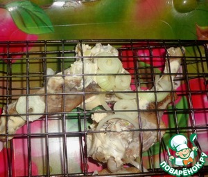 Раскладываем ножки на решетке и жарим над углями до готовности.