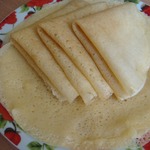 [+5]В тесто добавила 1 ст.л. воды. Сковородку не смазывала, переворачивались легко. Готовые блины смазала сливочным маслом.