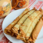 Из данного количества продуктов у меня получается 10-12 блинов. Не люблю холодные блины, поэтому выпекаю так мало. Тем более блины получаются толстыми и очень сытными.