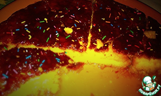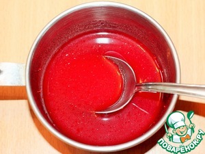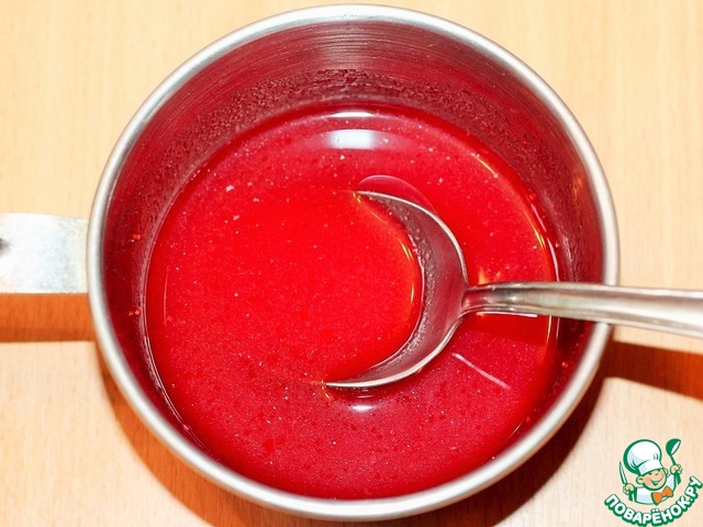 Миску с готовой глазурью ставим в холодную воду и перемешиваем. Фруктовая глазурь по немногу застывает.