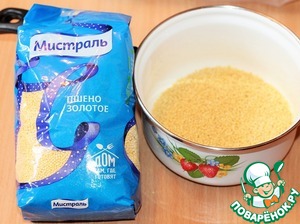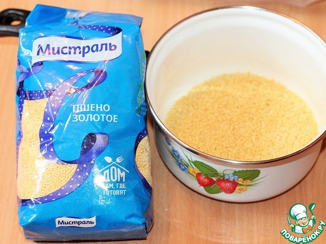 - Пшено ("Золотое" ТМ "Мистраль", 1 стак. =210 мл ) — 2/3 стак.