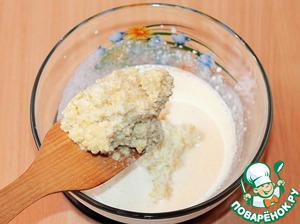 Выкладываем приготовленное пшено в творожную массу и перемешиваем до однородности,