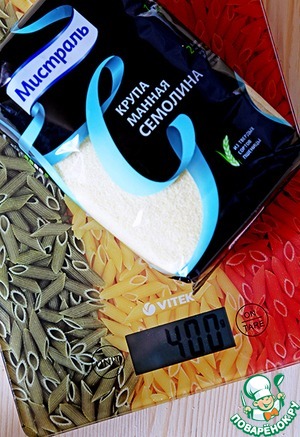 Для приготовления 12-13 пирожков нам понадобится для теста 400г семолины (это вид манной крупы мелкого помола из твердых сортов пшеницы)