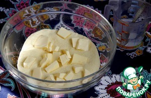 В семолину добавить кусочки мягкого сливочного масла, растереть его с семолиной, затем постепенно ввести подготовленную воду, замешивая "пушистое" тесто. Тесто - очень мягкое и податливое в работе. -