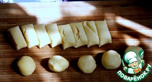 Тесто разделить на равные кусочки, скатать шарики размером с финик