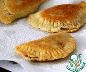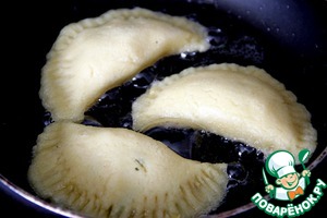 Обжарить пирожки в небольшом количестве разогретого растительного (оливкового) масла до румяности с обеих сторон