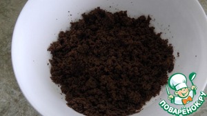масло растопить на огне (до кипения не доводим). Мелко растолочь печенье в крошку. -