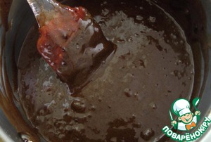 Шоколад растопить на водяной бане и добавить желтки интенсивно помешивая. Добавить шоколад в карамель и хорошо перемешать. Белки взбить до пиков и аккуратно добавить их к шоколаду и карамели.