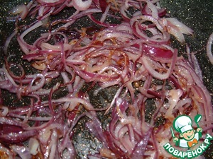 Режем луковицу тонкими полукольцами, обжариваем до золотистости.