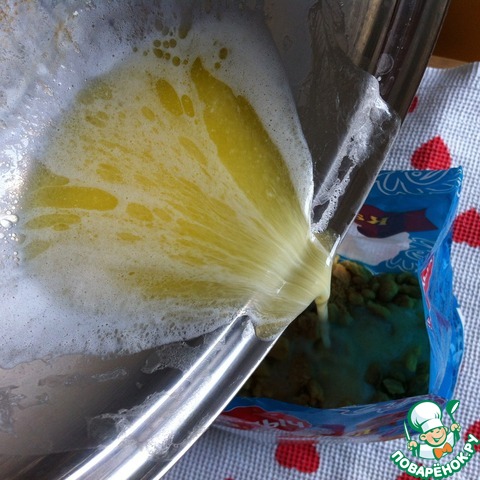 Сливочное масло растопить и смешать с печеньем. Я вливаю прямо в пачку.