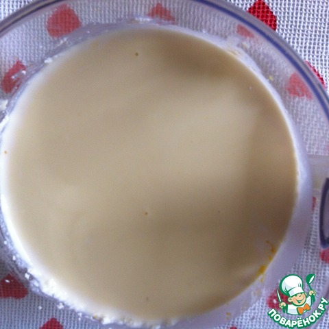 Взбить творог, добавляя сгущенку, яйца и ванилин.