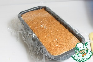 Закрываем все бисквитом. Слегка утапливаем его. И убираем нa 3 часа в холод.