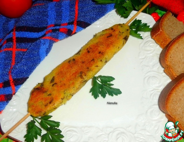 Шашлык из картофельной массы с мускатным орехом, что делает блюдо очень ароматным и вкусным.