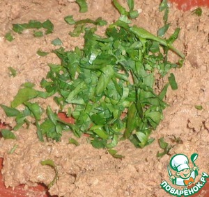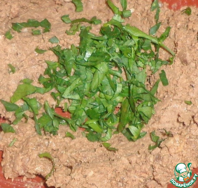 Петрушку промыть водой, обсушить немного и мелко нарезать.