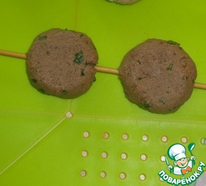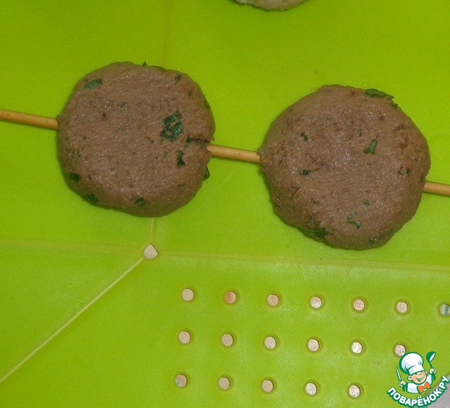 Формируем из массы котлеты и нанизываем на шпажки.