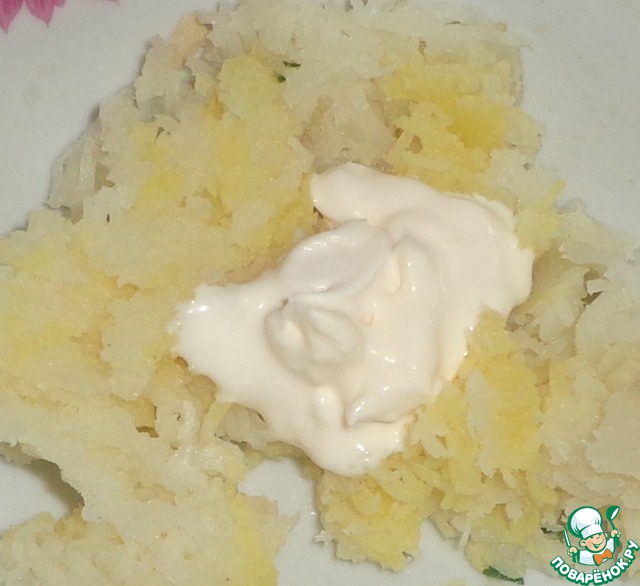 • Отварной картофель натереть на терке и соединить со сметаной.