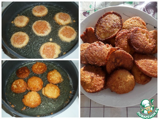 Обжариваем с двух сторон на сковороде на растительном масле. Выкладываем на бумажные полотенца, избавляясь от лишнего масла.
