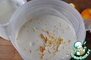Наливаем по 2 ст. ложки апельсинового и лимонного сока, перемешиваем.