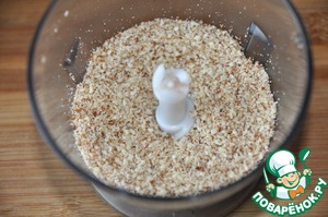Миндаль подсушиваем на сковороде и измельчаем в мелкую крошку.