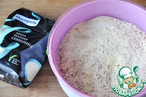 Берём крупу манную Семолина от "Мистраль", смешиваем с миндалём и разрыхлителем теста.