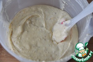 Добавляем сухую смесь в тесто и перемешиваем всё лопаткой.