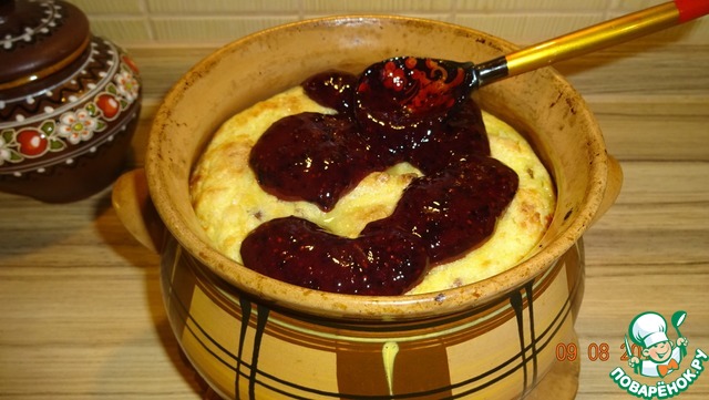Когда каша будет готова, сверху положите соус из клубники.