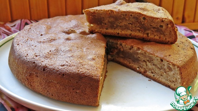 Но так как мы любим влажную выпечку, то я пирог пропитала медовой водой ( в 0.5 стакане горячей воды растворила 2 чайные ложки с большой горкой меда). -
