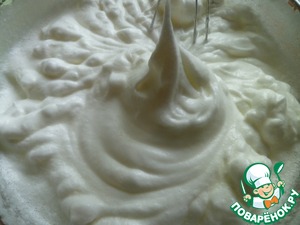 Для начала нужно взбить в крепкую пену охлажденные белки.