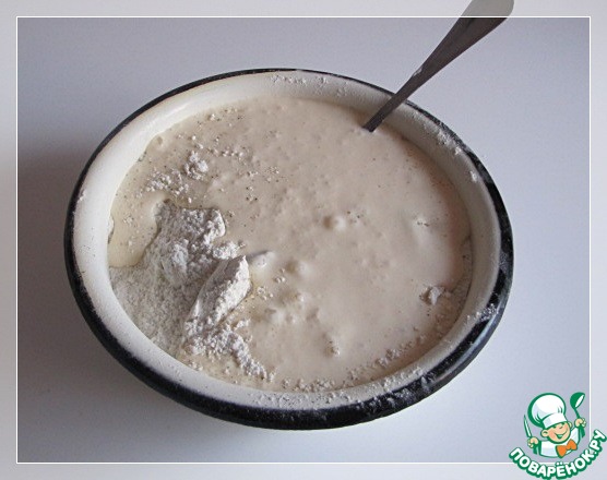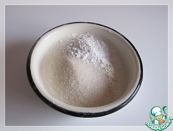 Смешать сухие ингредиенты: муку, сахар, разрыхлитель