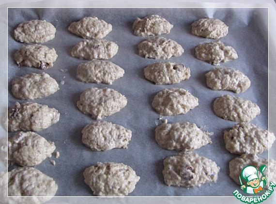 При мощи двух столовых ложек, смоченных в воде, сформировать овальные печеньки, выложить их на пергамент.