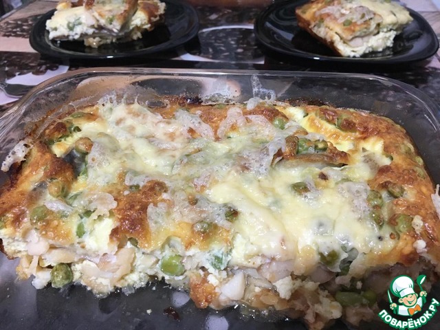 На рыбу выкладываем зеленый горошек. ( без жидкости)