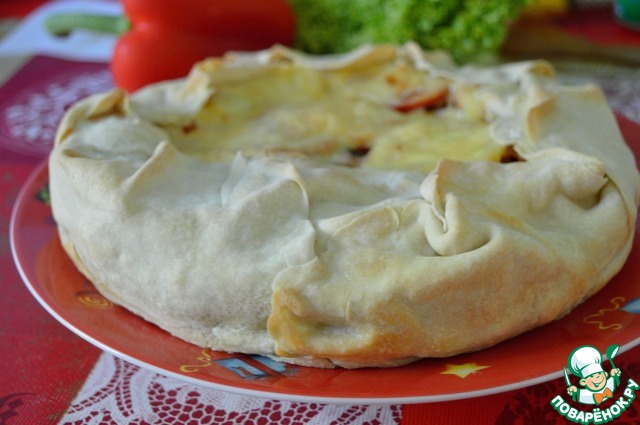Киш с курицей из вытяжного теста