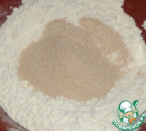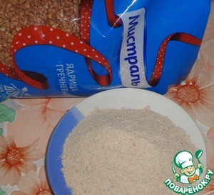 Пшеничную муку соединяем с гречневой мукой и содой.