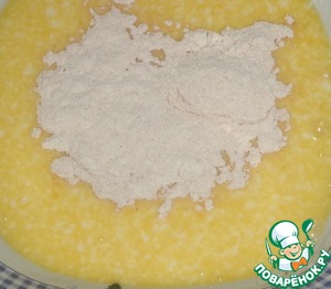 Добавляем муку к яйцу с простоквашей и замешиваем тесто.