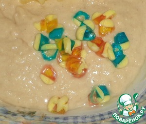 Мармелад порезать на маленькие кусочки и добавить в тесто. Перемешать.