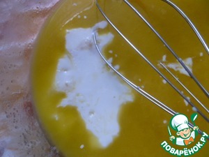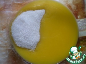 Маргарин растопить и добавить сахар с ванильным сахаром.