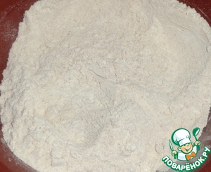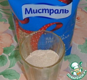 Гречневую муку смешиваем с разрыхлителем теста и мукой.