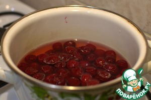 Вишню залить водой, довести до кипения и варить на маленьком огне 15 мин.