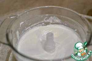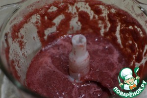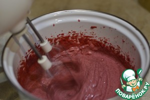 Взбить миксером вишневую массу до увеличения в 2 раза