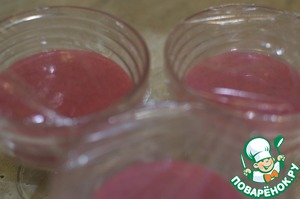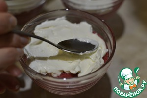 Заполнить креманки примерно на 1/3 или как Вам больше нравится, и убрать в холодильник на 30-40 минут, оставшуюся вишневую массу так же убрать в холодильник.