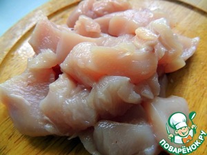 Куриное филе режем небольшими кусочками.