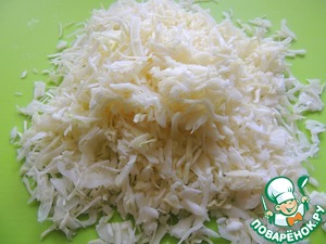 Капусту мелко нашинковать, посолив, хорошо размять руками.