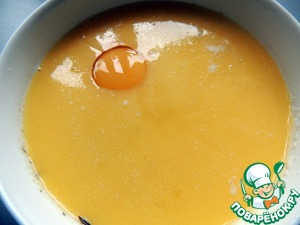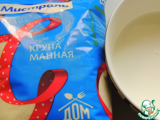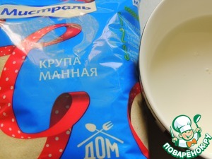 Масло растопить и вылить в манку. Вбить яйца и хорошо перемешать. Посолить и поперчить по вкусу.