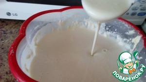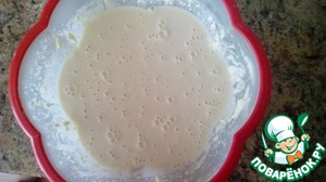 Выливаем в глубокую миску молоко, всыпаем просеянную муку и замешиваем, чтобы не было комочков.