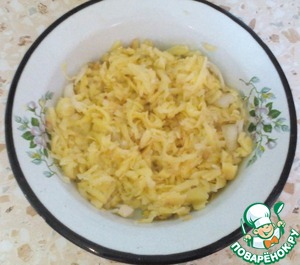Трём картошку с луком на тёрке (сначала лучше лук, тогда картошка не потемнеет, ведь на тёрке останется сок от лука)