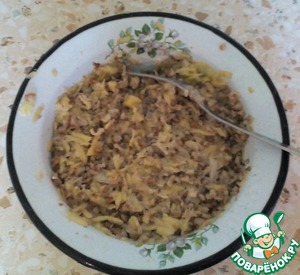 Добавляем нашу гречку, солим, перчим и перемешиваем