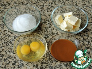 Яйца взбить с размягченным маслом, сахаром. Добавить вареную сгущенку.