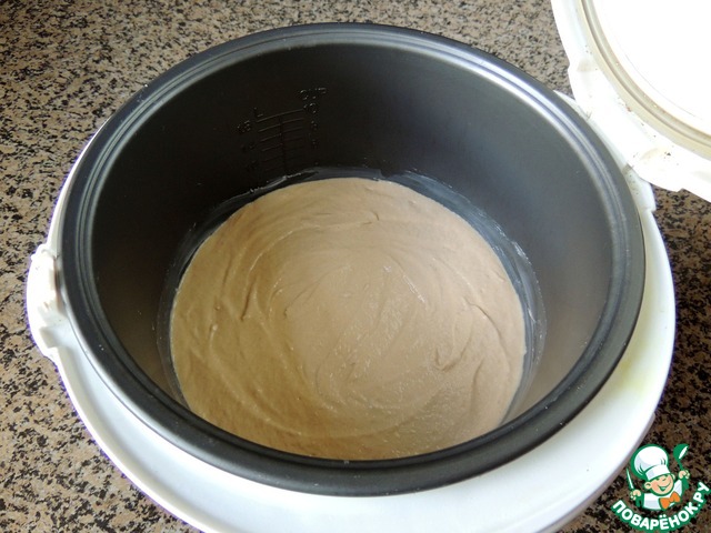 Вылить тесто в смазанную маслом чашу мультиварки. Готовить в режиме "выпечка" 60 минут.