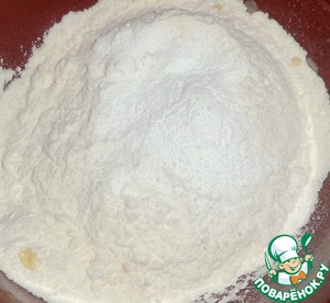 Муку смешиваем с гречневой мукой, солью и разрыхлителем теста.