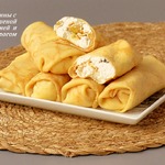 Румяные, сладкие блины с начинкой из домашнего творога и сушеной вишни.